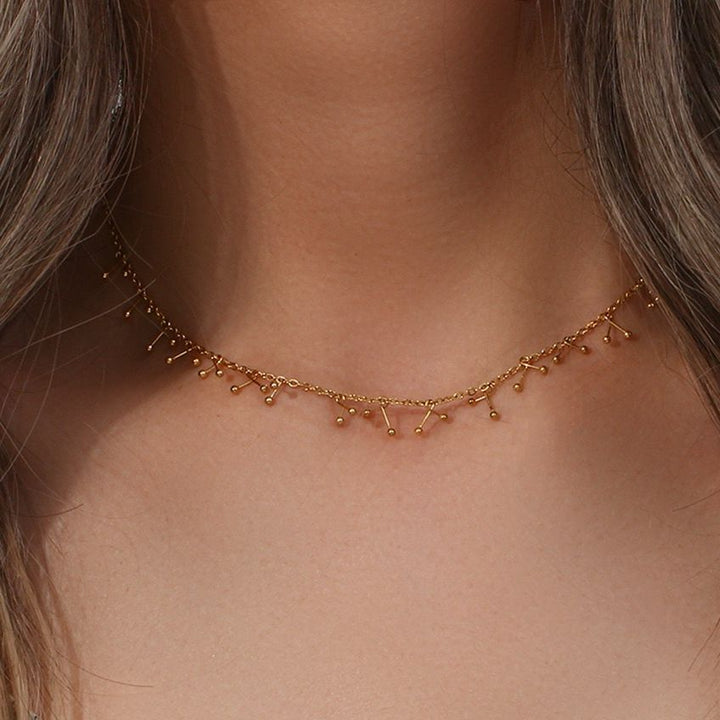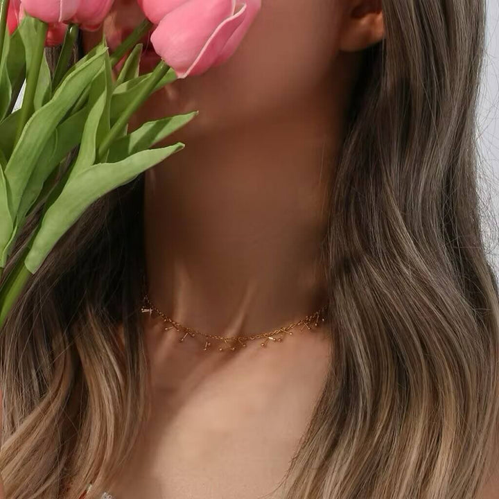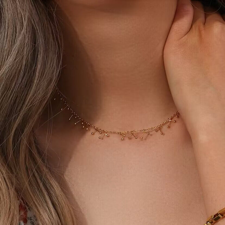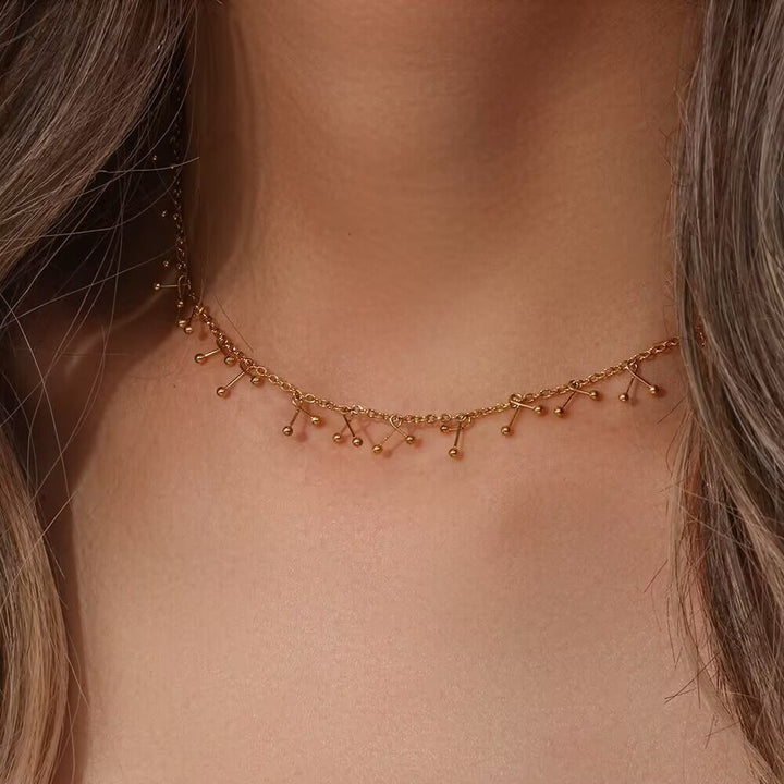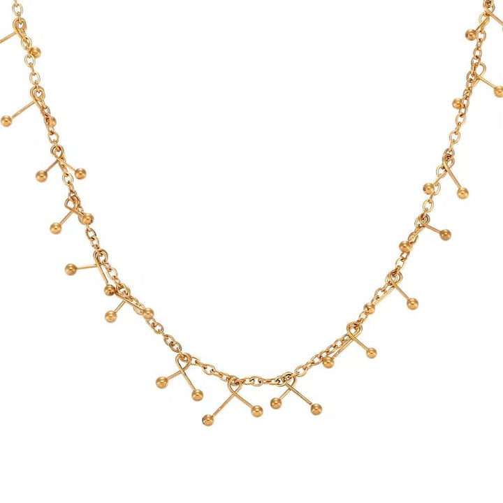 This Bead Cross Tassel Necklace is designed entirely with round beads and cross hooks. It is handmade by our studio. It is an extremely heavy-duty clavicle necklace that reflects its luxury and personality, and is a niche match.